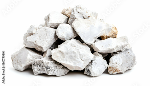 White mineral rocks pile isolated on white