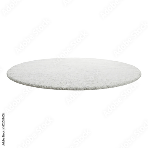 White Modern Beautiful soft round carpets mat with textured pattern on white background, Aerial view