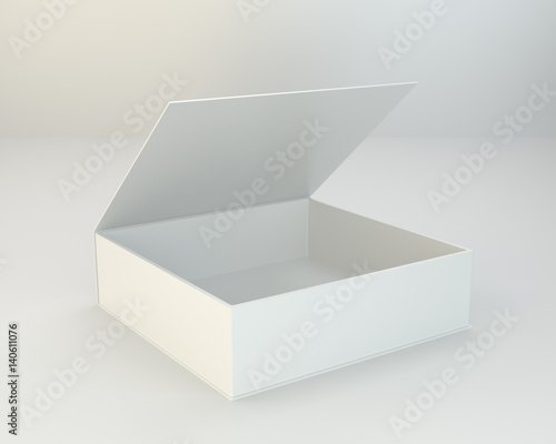 White open box on gray background. 3d rendering
