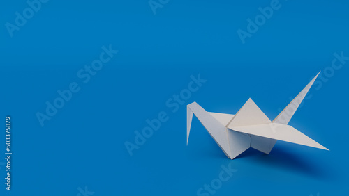 White Origami Bird. Modern Design with Blue Background and Copy Space.