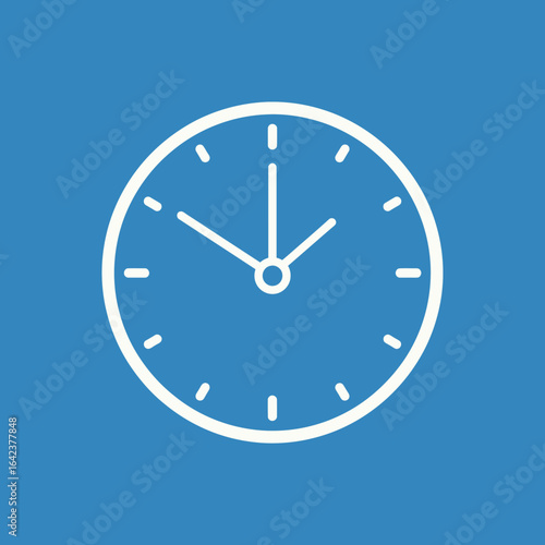 White outline clock on blue background showing approximately ten minutes to ten.