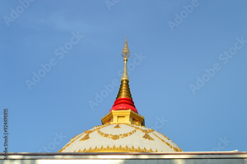 White Pagoda, Lanna Architecture , Symbols of Buddhism, South East Asia in Evening at Wat Phra That Doi Saket temple Chiang Mai ,Northern Thailand