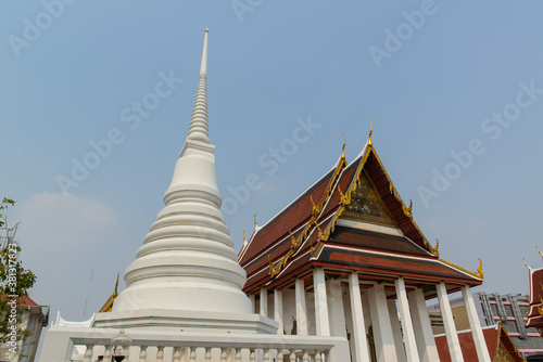 White pagoda (Phra borom mathat maha chedi) at Wat Prayurawongsawas Worawiharn in Bangkok, Thailand.