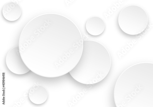 White paper circles with shadows on white background. Abstract template for business presentation with note spaces.