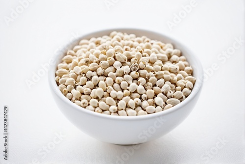 White Peppercorns on Light Background – Subtle Aromatic Spice for Fine Cuisine, Gourmet Cooking, and Minimalist Food Styling Concepts