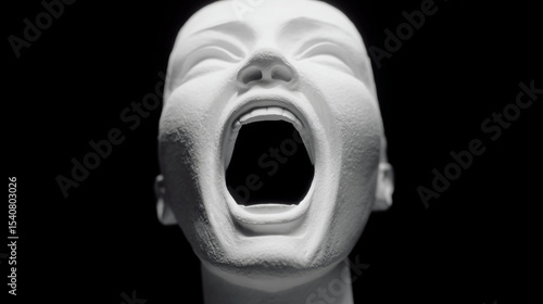 White plaster head screaming against a black background art.
