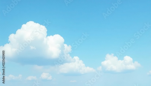 White puffy clouds against a clear pale blue sky, soft, airy, blue