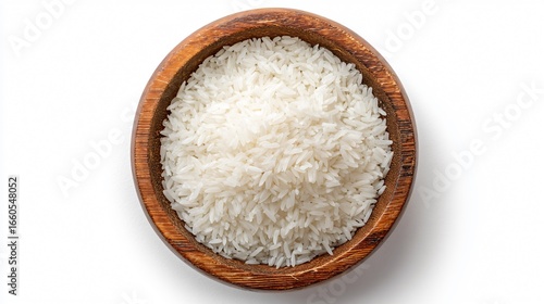 White Rice in Wooden Bowl on White Background - Professional Food Photography