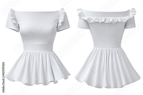 White ruffle mini dress, front and back view, isolated for use in fashion retail design