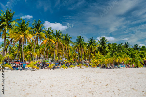 White sand beach with cocos palms, Isla Mujeres island, Caribbean Sea, Cancun, Yucatan, Mexico