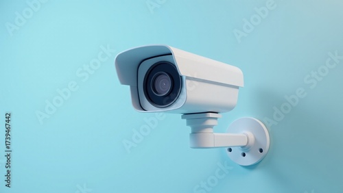 White Security Camera On Blue Wall