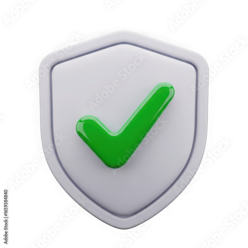 White shield with green check mark isolated on transparent background