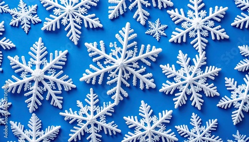 White snowflakes on blue background.