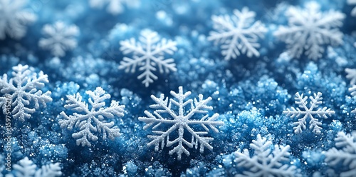 White snowflakes on blue ice crystals winter frost