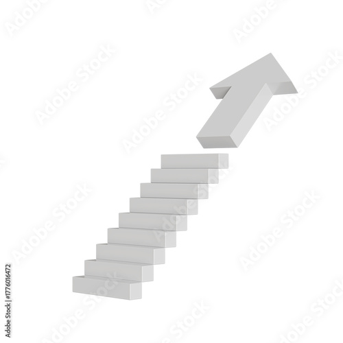 white stairs transforming into an upward arrow, viewed from a front-right angle. Business growth, progress, and success concept on a transparent background.