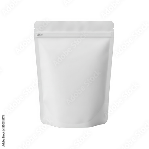 White stand-up pouch with zipper isolated on transparent background