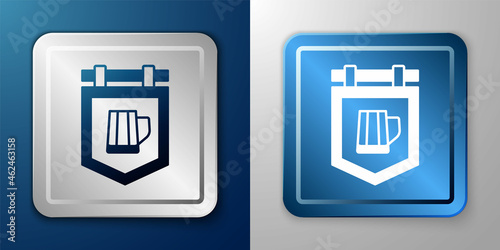 White Street signboard with glass of beer icon isolated on blue and grey background. Suitable for advertisements bar, cafe, pub, restaurant. Silver and blue square button. Vector