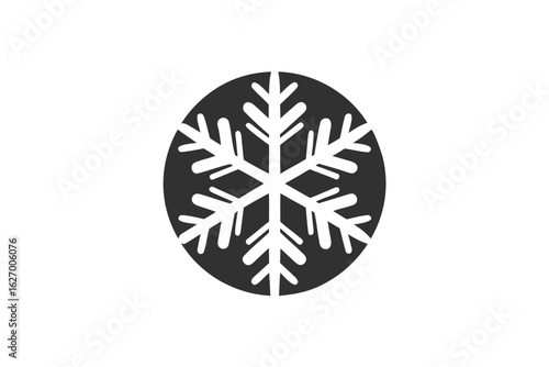 White symmetrical snowflake within a dark gray circle creates a winter holiday design
