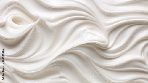 White texture of whipped cream, buttercream, cosmetic cream. Close up of vanilla yogurt. Top view.