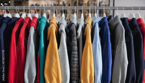 white th multicolored clothing colourful olated clothing store colours hoodies sweaters concept display fabric hangers business