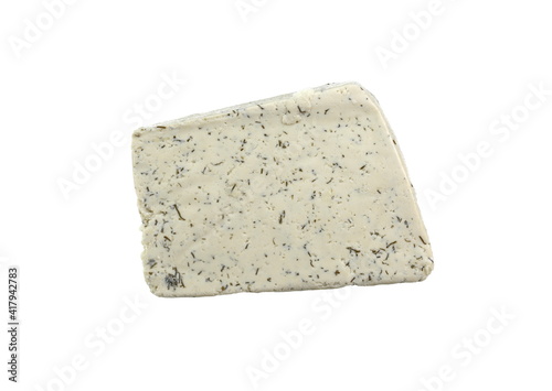White Tofu with dill spice isolated on white background.