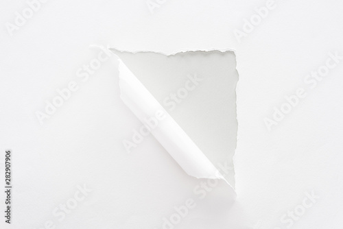 white torn and rolled paper on grey background