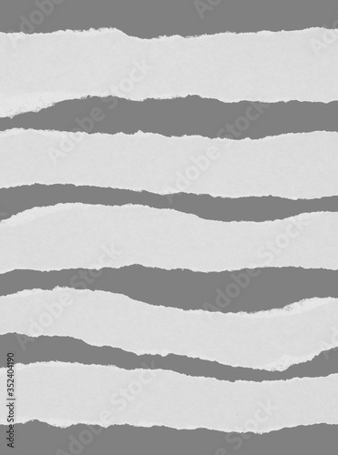 White torn paper collection isolated on grey background, ripped blank mockup.
