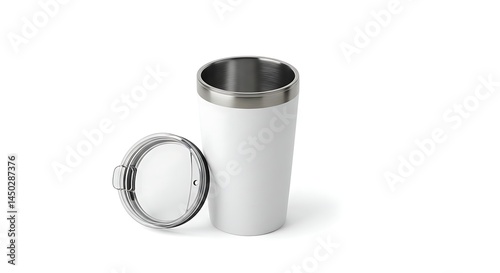 White Tumbler with Lid Open on White Background