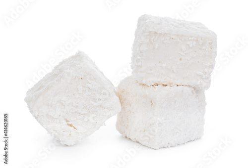 White Turkish delight with coconut shavings isolated on white