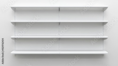 White wall-mounted shelving unit six shelves is made An empty supermarket