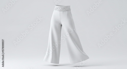 White Wide Leg Pants with Lace Waistband on Plain Light Gray Background