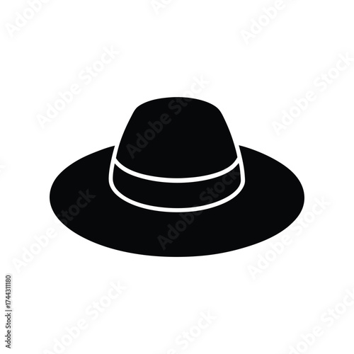 Wide Brim Hat Black Silhouette Vector Illustration