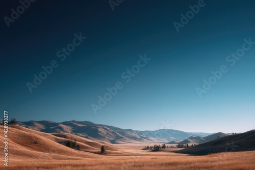 wide expanse of serene national park featuring gentle rolling hills under clear blue sky