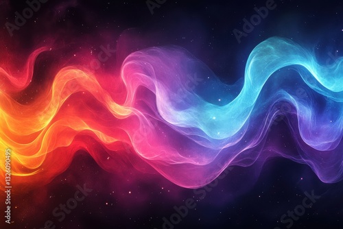 Wide Shot Colorful energy wave in the dark space. Abstract Galaxy Nebula cosmic, background illustration, fantasy, futuristic, digital art.