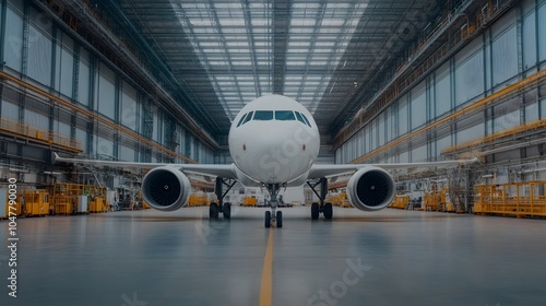 Wide shot of mechanics working together in an expansive aircraft maintenance hangar with various planes and equipment visible throughout the industrial workspace