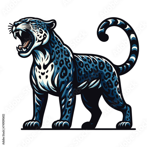 Wild roaring jaguar leopard full body vector illustration, zoology illustration, animal predator big cat design template isolated on white background