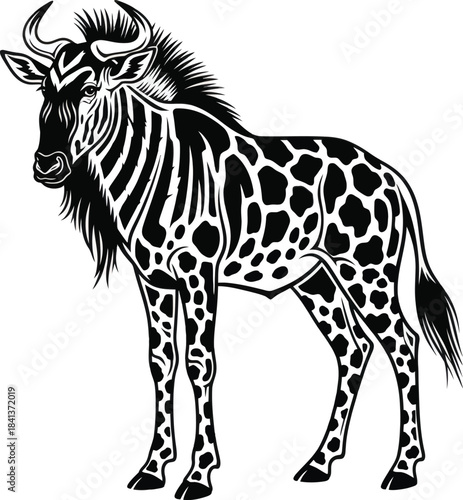 Wildebeest Giraffe Hybrid Animal Stylized Wildlife Vector