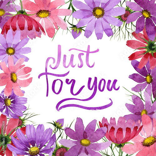 Wildflower kosmeya flower frame in a watercolor style isolated.
