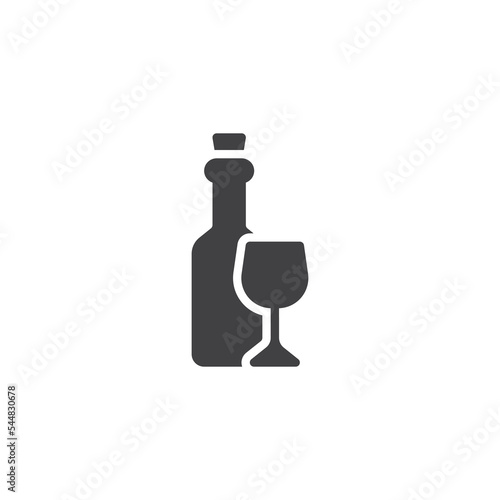 Wine bottle and glass vector icon