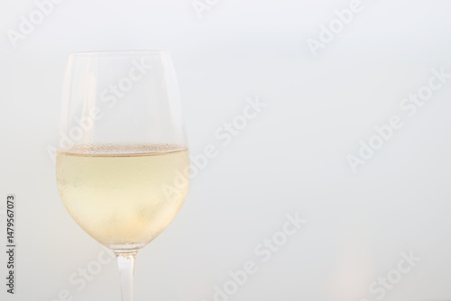 Wine glass close-up in real life, beautiful blurred background of the drink in the glass