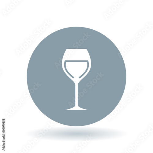 Wine glass icon. Wine tasting sign. Alcohol symbol. White wine glass icon on cool grey circle background. Vector illustration.