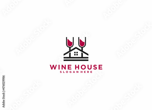 wine house logo with two drinks in the shape of a house