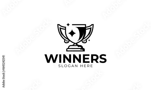 Winners star logo design. trophy symbol with black color and simple style for championship