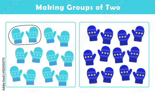 Winter activity sheet. Making Groups of Two Worksheet. Grouping Picture Math Activity for Kids. Fun Math Activity for Children. Math kids activity sheet.
