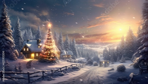 winter christmas landscape , houses, city,