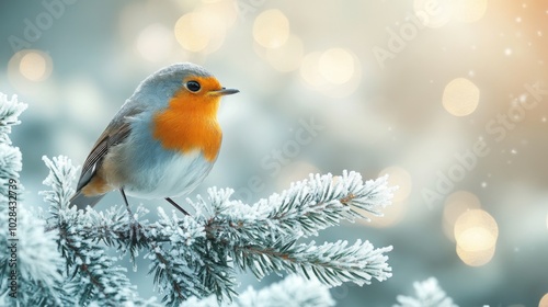 Winter cute bird sitting on the tree branch. Beautiful nature banner with bokeh background. Park or garden animal.