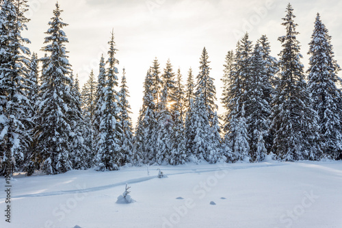 Winter forest in Sunny day