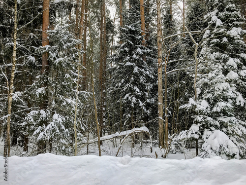 Winter forest. Winter forest road. Snowy road. Winter landscape.