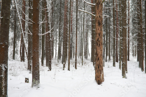Winter landscape. Forest under the snow. Winter in the park.