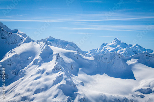 Winter panoramic view of the snowy high mountains of Elbrus in the Russia
